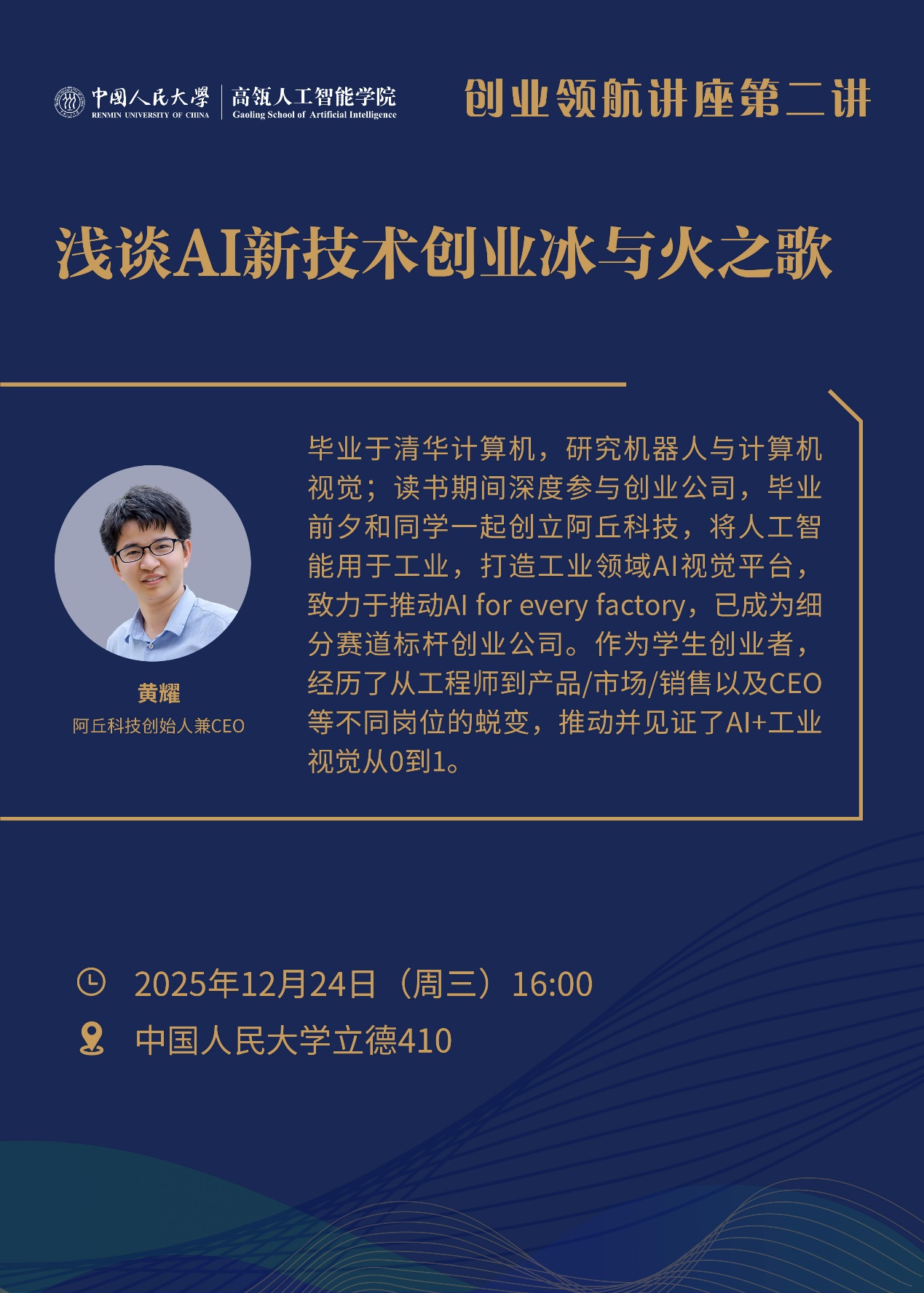 本项目由av直播 av直播 与高瓴创Aseed+种子计划共同发起,旨在构建一个连接学术前沿与产业实践的对话平台。其核心宗旨在于:以塑造商业认知和推动产业实践为目标,打破从理论创新到产业转化的关键壁垒,引导学生深刻理解人工智能技术所承载的社会价值与商业潜能。通过邀请知名企业创始人及高管分享其战略视野、创业历程与实战经验,启迪学生心智,为学生播下创新创业的种子,塑造其将技术创新与社会需求相结合的使命感与洞察力。