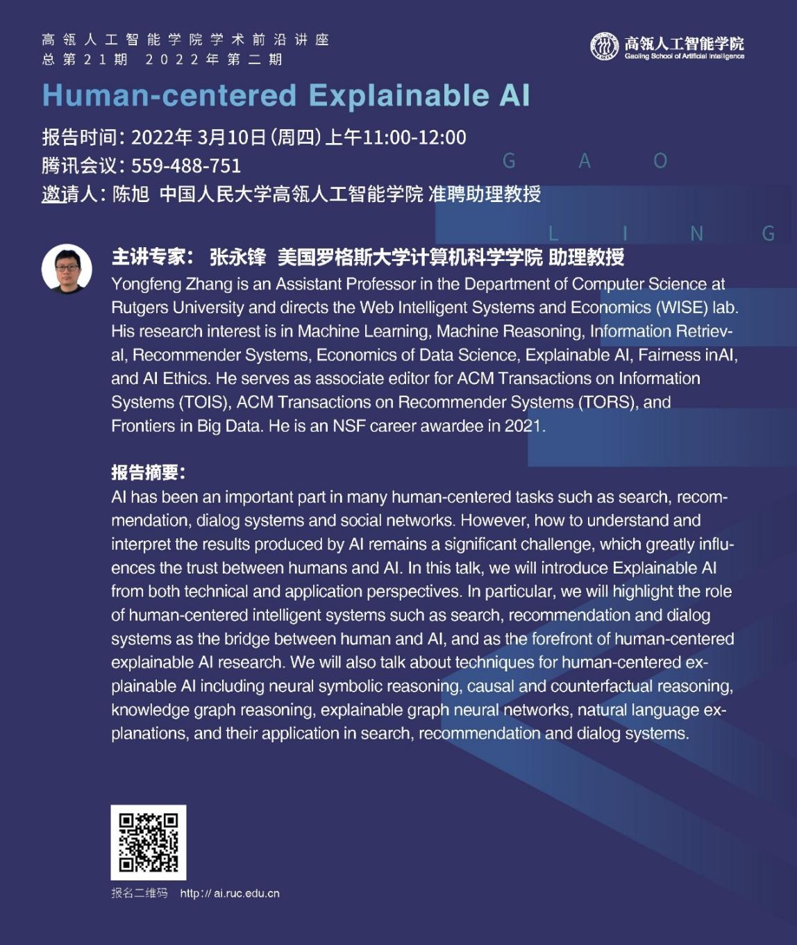 报告题目:Human-centered Explainable AI