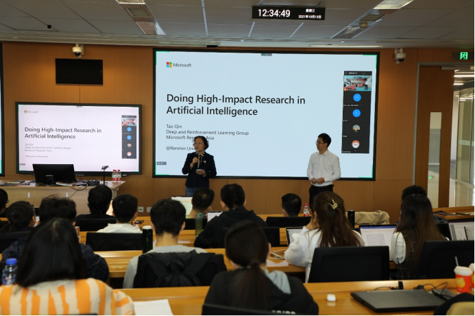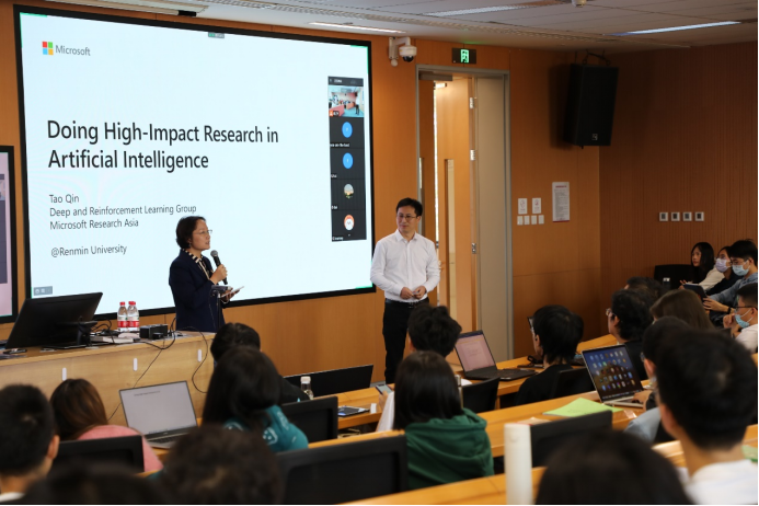 近日,av直播 在av直播 举办“高屋建瓴AI公开课”第8期。微软亚洲研究院首席研究员秦涛博士受邀以“Doing High-Impac Research in Artifical Intelligence”为题,围绕如何做出高质量,高影响力的研究工作进行了精彩分享。活动以线上线下相结合的方式召开,由av直播 长聘副教授宋睿华主持,约150位师生到场参与了交流。