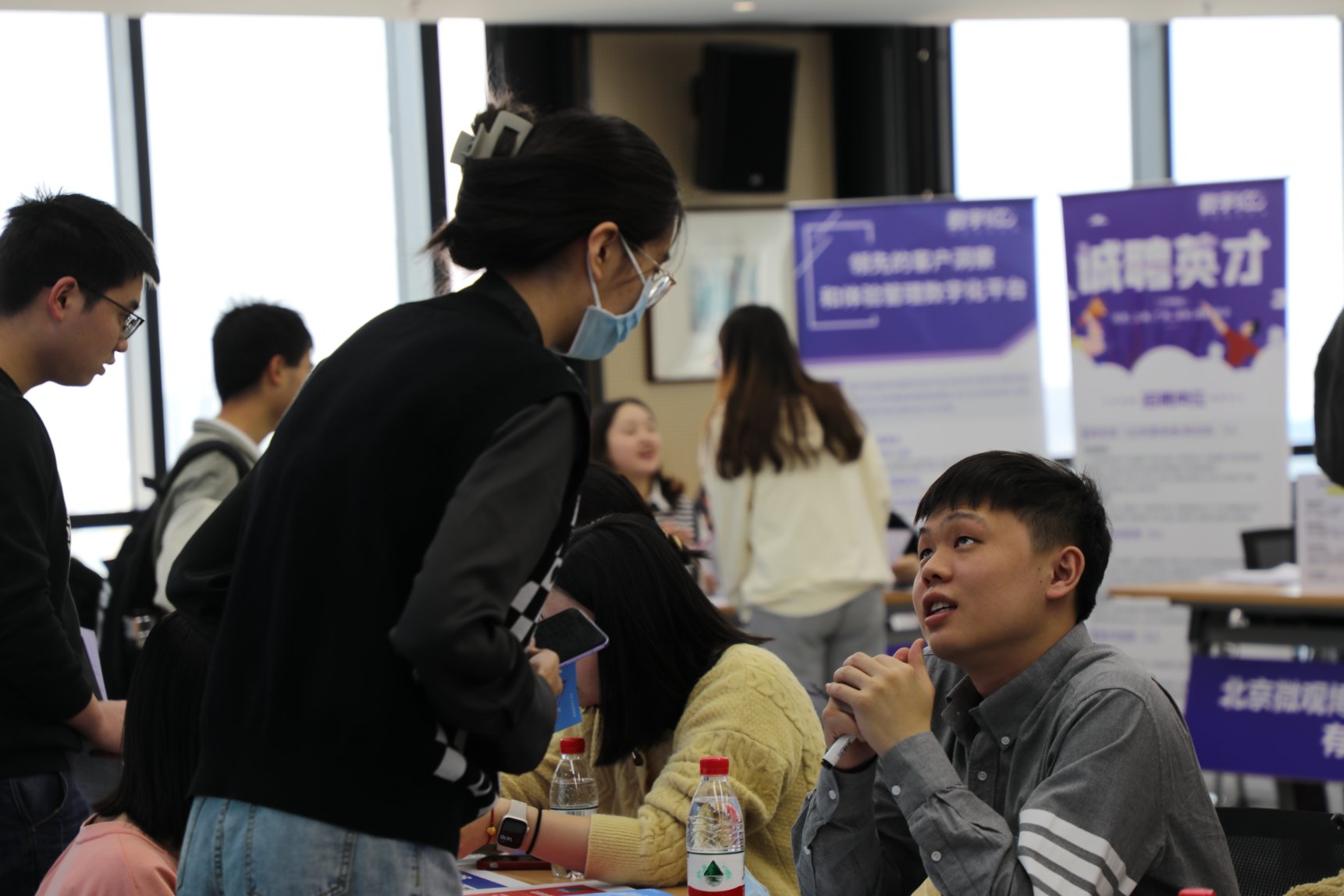 本次双选会由av直播 理工院系(环境av直播 、理av直播 、信息av直播 、av直播 、数学av直播 、统计av直播 、统计与大数据研究院)联合举办,共邀请到18家企业,包含信息技术、人力资源、金融、保险、私募、投资等各类国/央企和私企,招聘岗位数达100余个。