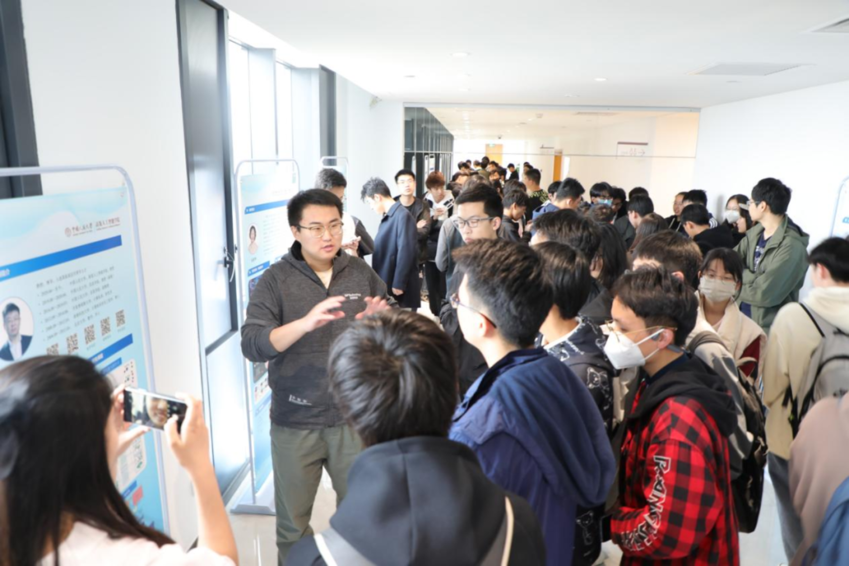 “AI学术市集”Poster展板陈列在高瓴人工智能楼走廊,展示了av直播 各位老师的学术背景、研究方向与研究内容,方便参与者直观地了解教师的各个研究领域。参与活动的av直播 学子畅所欲言,提出他们对于人工智能的看法和感悟,交流学习经验和心得,与同学们共同探讨专业学习、道路选择上的相关问题,氛围轻松愉快。