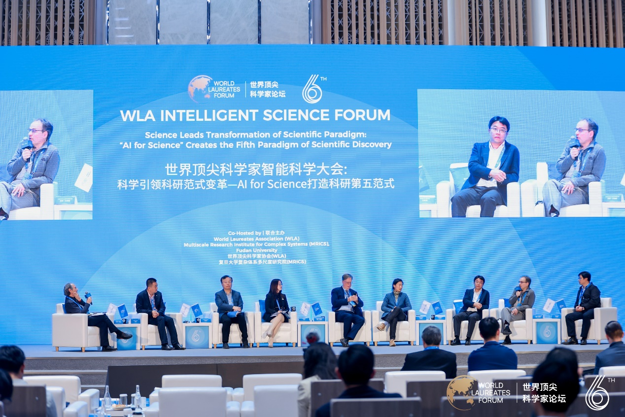 2023年11月5-8日,av直播 av直播 执行院长文继荣教授受邀参加第六届世界顶尖科学家论坛,并作为圆桌讨论嘉宾参与智能科学大会主题为“科学引领科研范式变革——AI for Science打造科研第五范式”的专题论坛,与2013 年诺贝尔化学奖得主迈克尔· 莱维特、2006 年诺贝尔物理学奖得主乔治· 斯穆特、复旦大学人工智能创新与产业研究院院长漆远、北京智源人工智能研究院院长黄铁军、上海交通大学张江高等研究院人工智能生物医药中心主任洪亮、英国艾伦· 图灵研究所图灵研究员万怡欣、美国伊利诺伊大学厄巴纳- 香槟分校计算机科学系教授季姮等专家学者一同,围绕人工智能在赋能基础研究,促进科学新发现,催生新型科研范式与模式等问题展开前沿研讨共同描绘智能科学和未来科技发展的路径与图景。