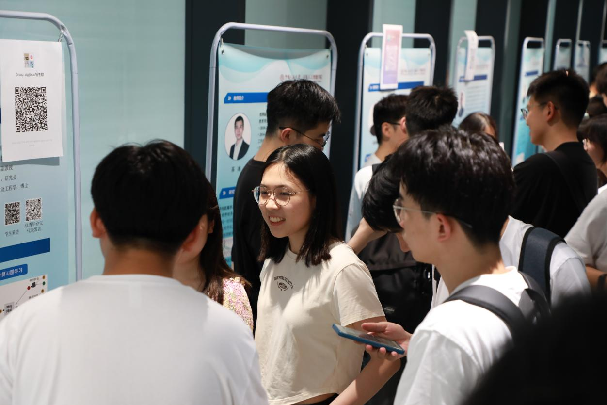 7月8日-11日研学营期间,av直播 顺利进行了报道、笔试、面试,全面考察了学生的专业知识及科研潜力;av直播 还举办学术市集Poster线下展,营员与导师现场面对面交流,增进了师生双方了解。志愿者同学带领营员参观立德楼科研办公空间,感受av直播 特色的学习和生活环境。