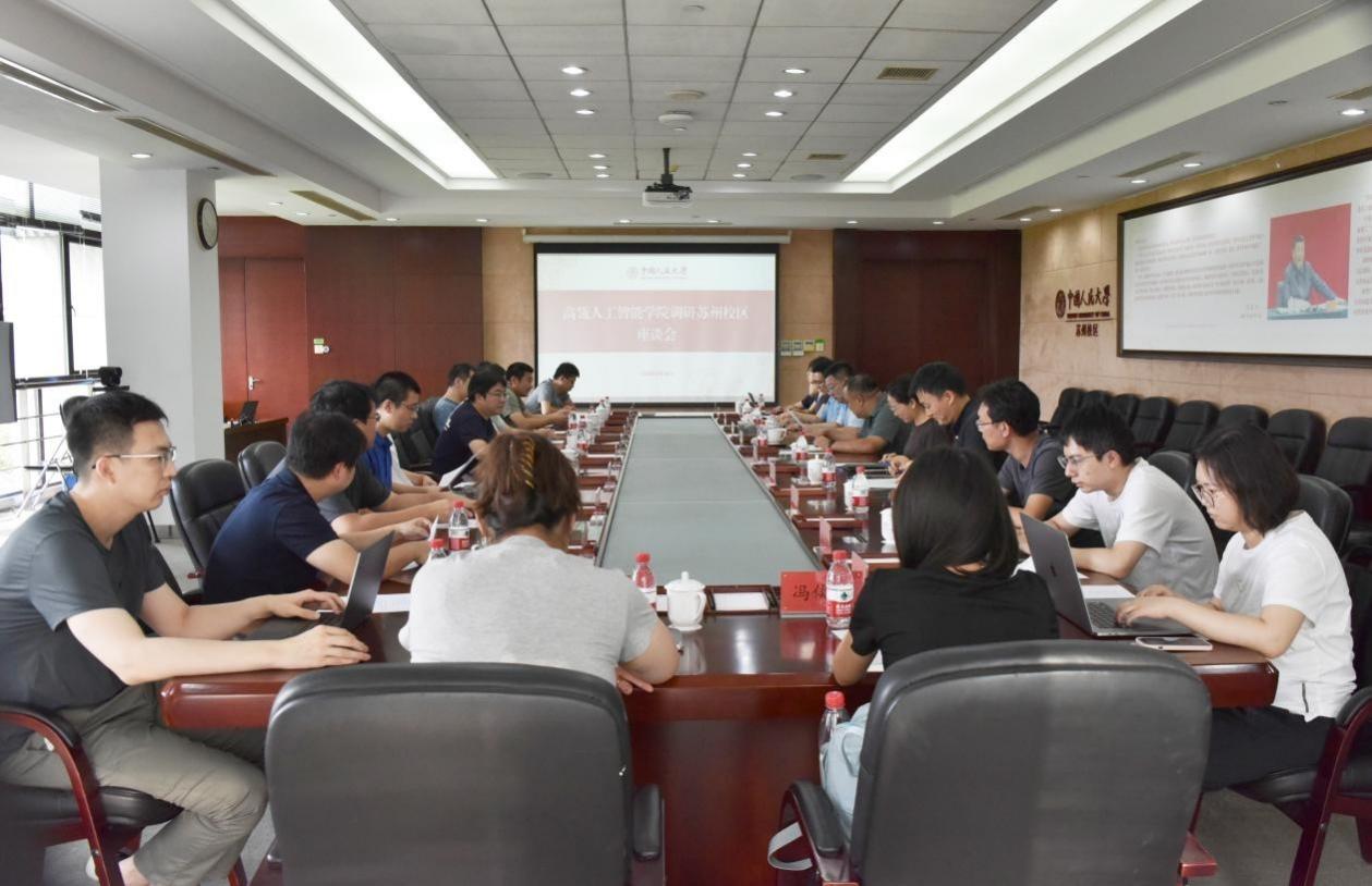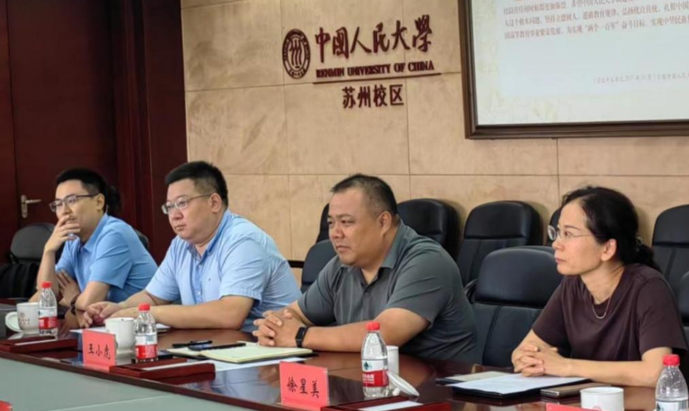 8月20日,文继荣院长带队前往苏州校区调研,与苏州校区管理委员会常务副主任、智慧治理av直播 院长王小虎等进行座谈交流。