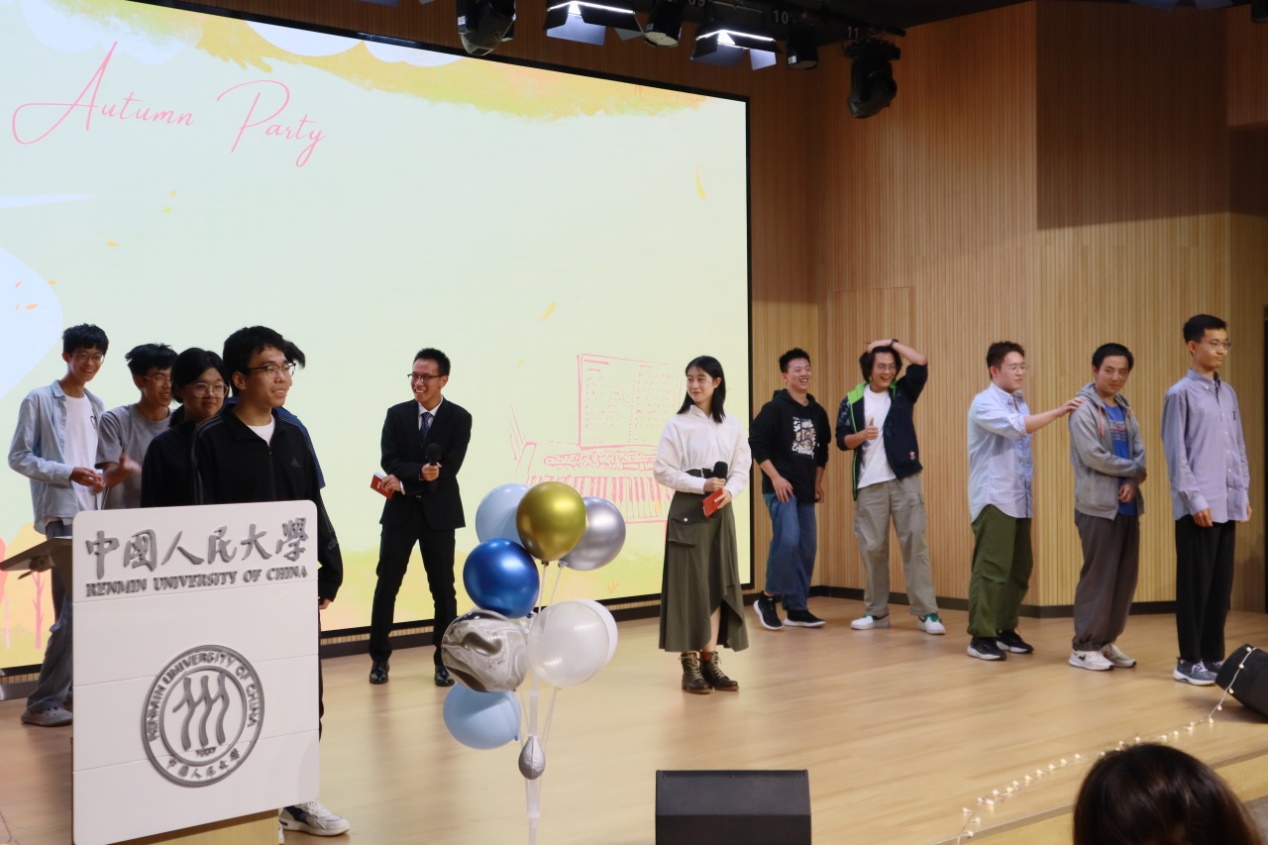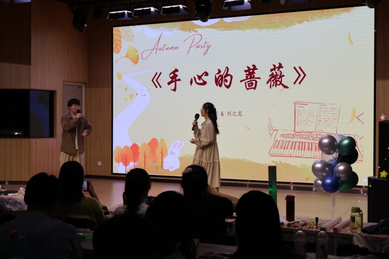 扣人心弦的演出暂停片刻,接下来是击鼓传花的小游戏,每当音乐停止,大家紧张又期待地盯着手中的玩偶,瞬间的沉默后总是爆发出阵阵欢笑,被抽中的同学将上台献唱,展现自己的才艺,并赢得精心准备的大礼包,惊喜与欢笑交织,使整个场面充满了活力与乐趣。