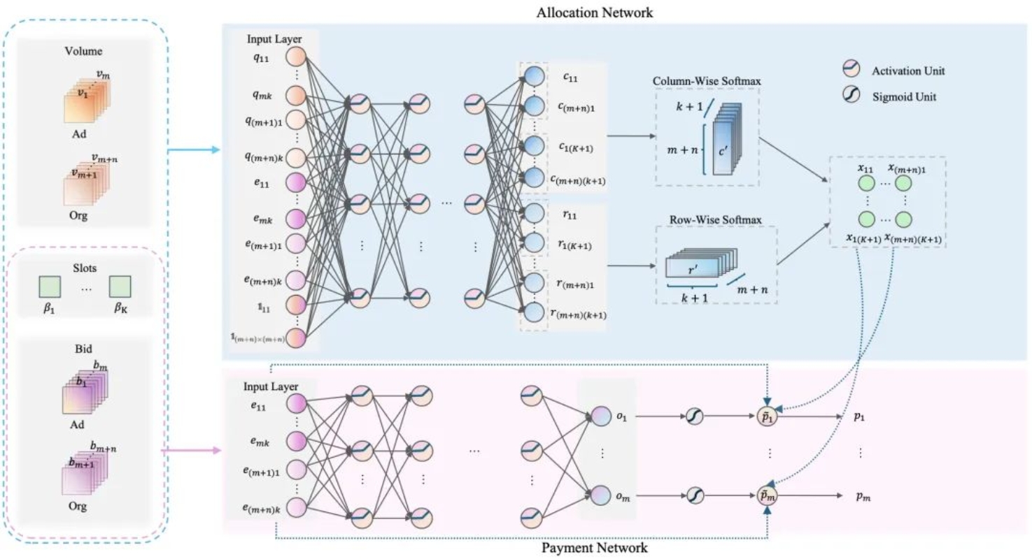 论文概述:传统的广告拍卖主要依赖基于规则的机制。这些机制在广告层面挑选出获胜广告,随后将它们组合成页面(PV)。然而,在多轮拍卖这种机制只能得到次优的分配结果。这源于设计排序规则以及挑选获胜广告集合需要巨大的计算开销,而且在广告层面进行挑选时,无法充分获取页面内的上下文信息。
