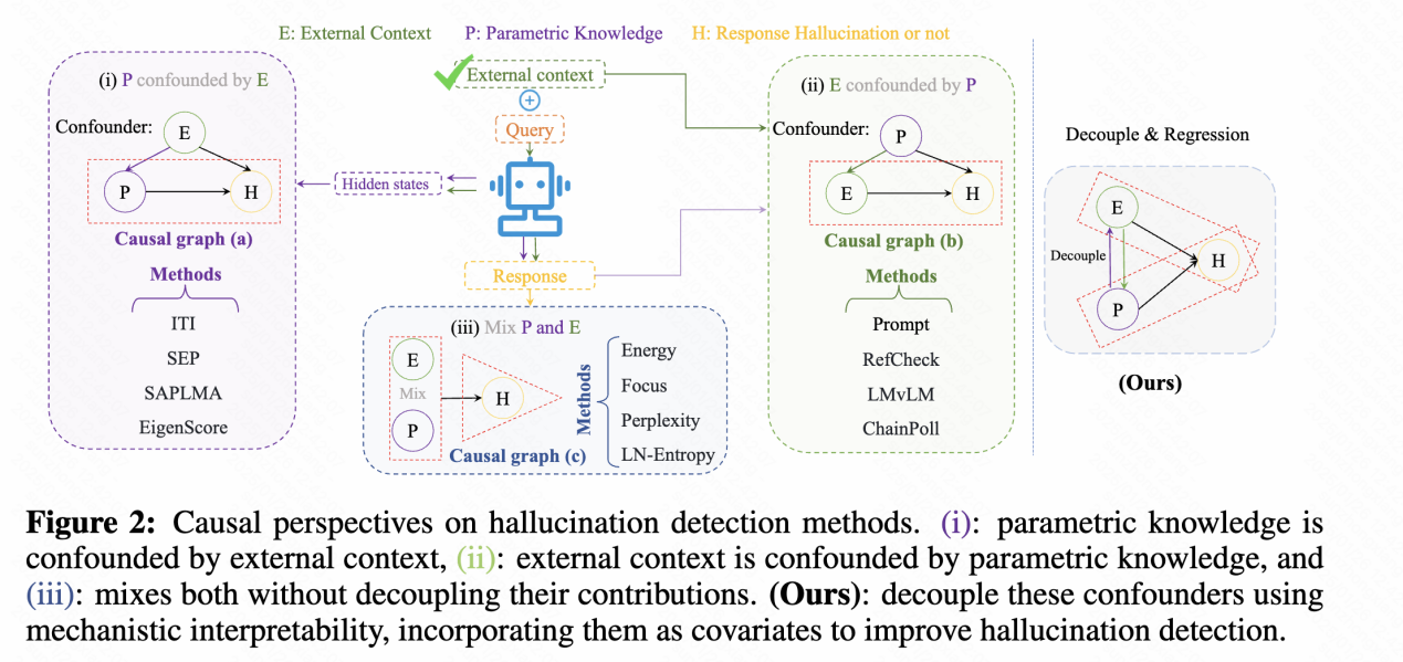 论文概述:检索增强生成(RAG)模型旨在结合外部知识,以减少由于参数(内部)知识不足引起的幻觉。然而,即便在检索到准确且相关的内容时,RAG 模型仍可能产生幻觉,表现为生成与检索信息冲突的输出。检测此类幻觉需要理清大语言模型(LLM)如何利用外部知识和参数知识。目前的检测方法往往聚焦于其中一种机制,或未能解耦其相互交织的影响,这使得准确检测变得困难。本文研究了 RAG 场景中幻觉产生的内在机制。我们发现,当 LLM 中的知识 FFN 在残差流中过度强调参数知识,而复制头未能有效保持或整合来自检索内容的外部知识时,幻觉便会发生。基于这些发现,我们提出了 ReDeEP,一种通过解耦 LLM 对外部上下文和参数知识的利用来检测幻觉的创新方法。实验结果表明,ReDeEP 显著提高了 RAG 幻觉检测的准确性。此外,我们还提出了 AARF,通过调节知识 FFN 和复制头的贡献,缓解了幻觉问题。