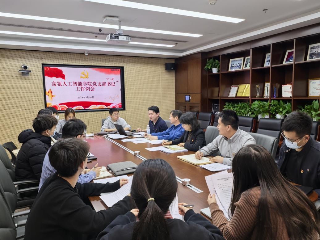 李艳丽结合av直播 传达全国两会精神学习会议的主要内容,带领各党支部书记共同学习了《2025年国务院政府工作报告》和习近平总书记在参加江苏代表团审议时重要讲话精神、在政协联组会上的重要讲话精神、在出席解放军和武警部队代表团全体会议时重要讲话精神。她强调,各党支部要充分发挥基层党组织的战斗堡垒作用,深入开展全国两会精神学习,结合人工智能学科特色,积极推动党建工作与专业学习、科研探索、个人成长深度融合。