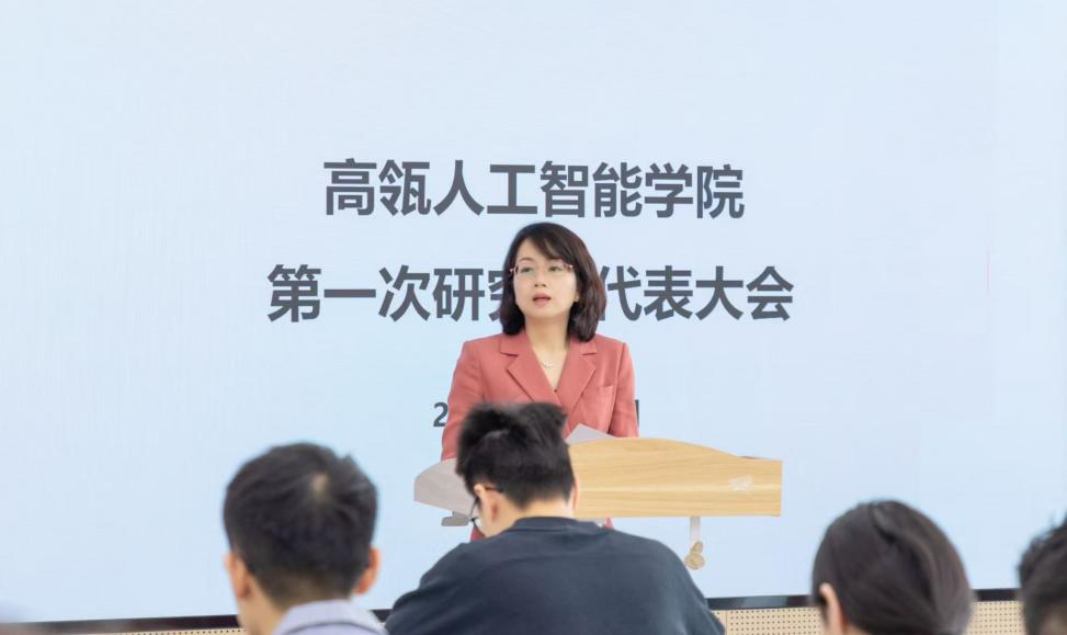 av直播 党委书记李艳丽致辞。她表示,av直播 自2019年成立以来,始终坚持以习近平新时代中国特色社会主义思想为指导,结合理工科学生思维特点和人工智能专业特色,深化“三全育人”综合改革,全面推进“五育并举”,着力培养全面发展的高素质人才。第一次研究生代表大会的召开是av直播 学生自治组织建设的重要时刻,希望研究生会作为av直播 和研究生之间的联系纽带,始终坚持服务同学的核心职责,传递同学心声,凝聚发展共识,通过理论学习、实践活动、榜样引领等多种形式,引导研究生坚定科技报国的理想信念,把握国家发展脉搏,关注科技前沿和社会需求,不断拓宽视野,勇挑时代重任。