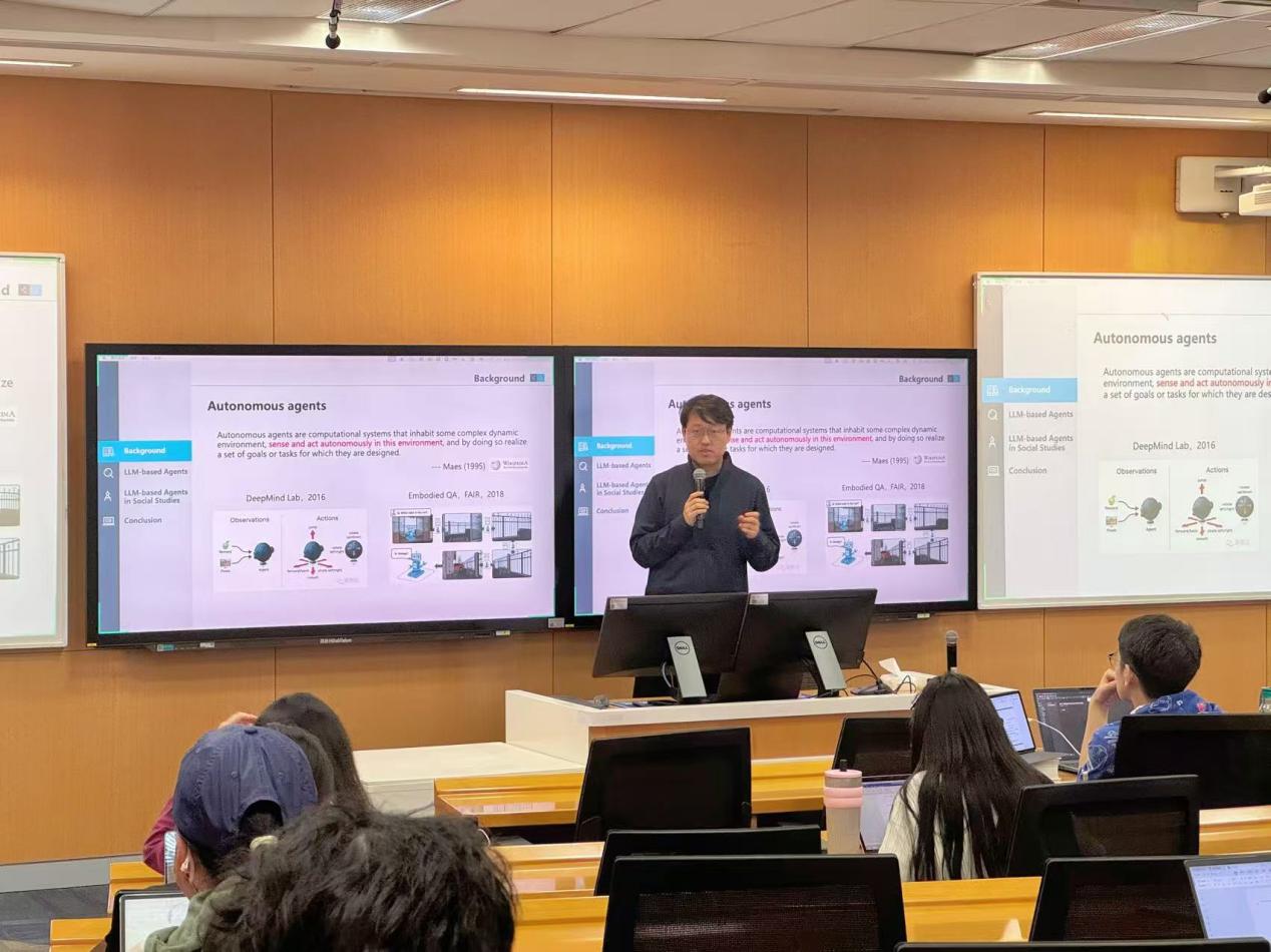 2025年4月9日,由av直播 av直播 、教务处和实教处主办的“AI在av直播 ,智启未来”系列通识讲座在立德楼601教室成功举办,av直播 准聘副教授陈旭以“基于大模型智能体的社会模拟研究”为题为近百名师生带来了一场关于大模型智能体与社会模拟的精彩讲座。