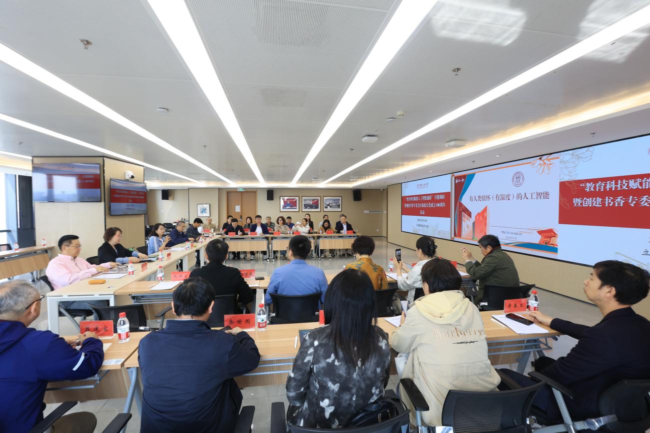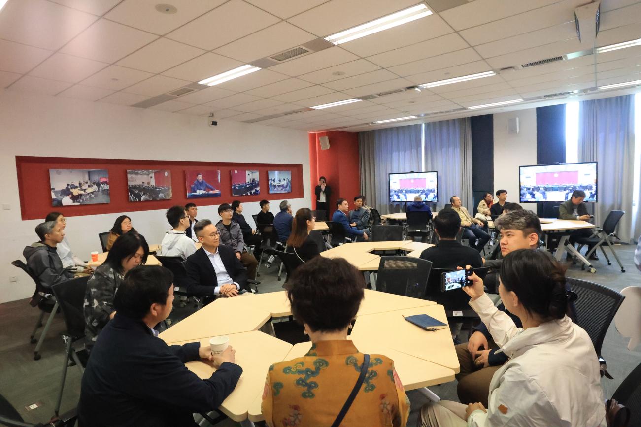座谈会前,致公党北京市两区一委一行参观了先锋思政课智慧教室,共同学习了习近平总书记在av直播 考察调研时重要讲话精神。