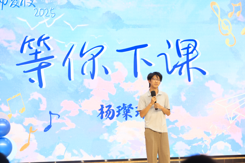 杨璨瑜带来《等你下课》,轻快的节奏唤醒记忆:粉笔字、单车铃、晚自习的走廊灯一一浮现。校园里的青春岁月成了大家共同的回忆。