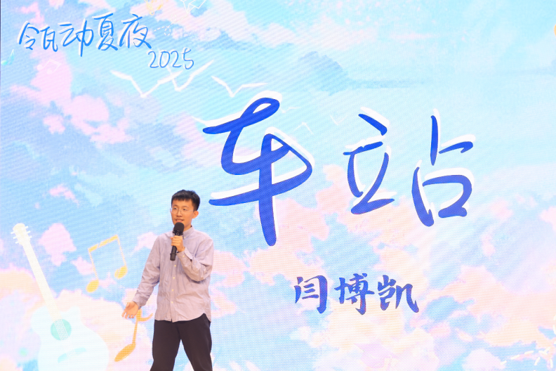 在如汽笛轻鸣的口琴前奏声中,闫博凯唱起《车站》,“离别的人们匆匆”的歌词里,过往与当下交错重叠。每个人的青春里,都有一列名为“成长”的列车。