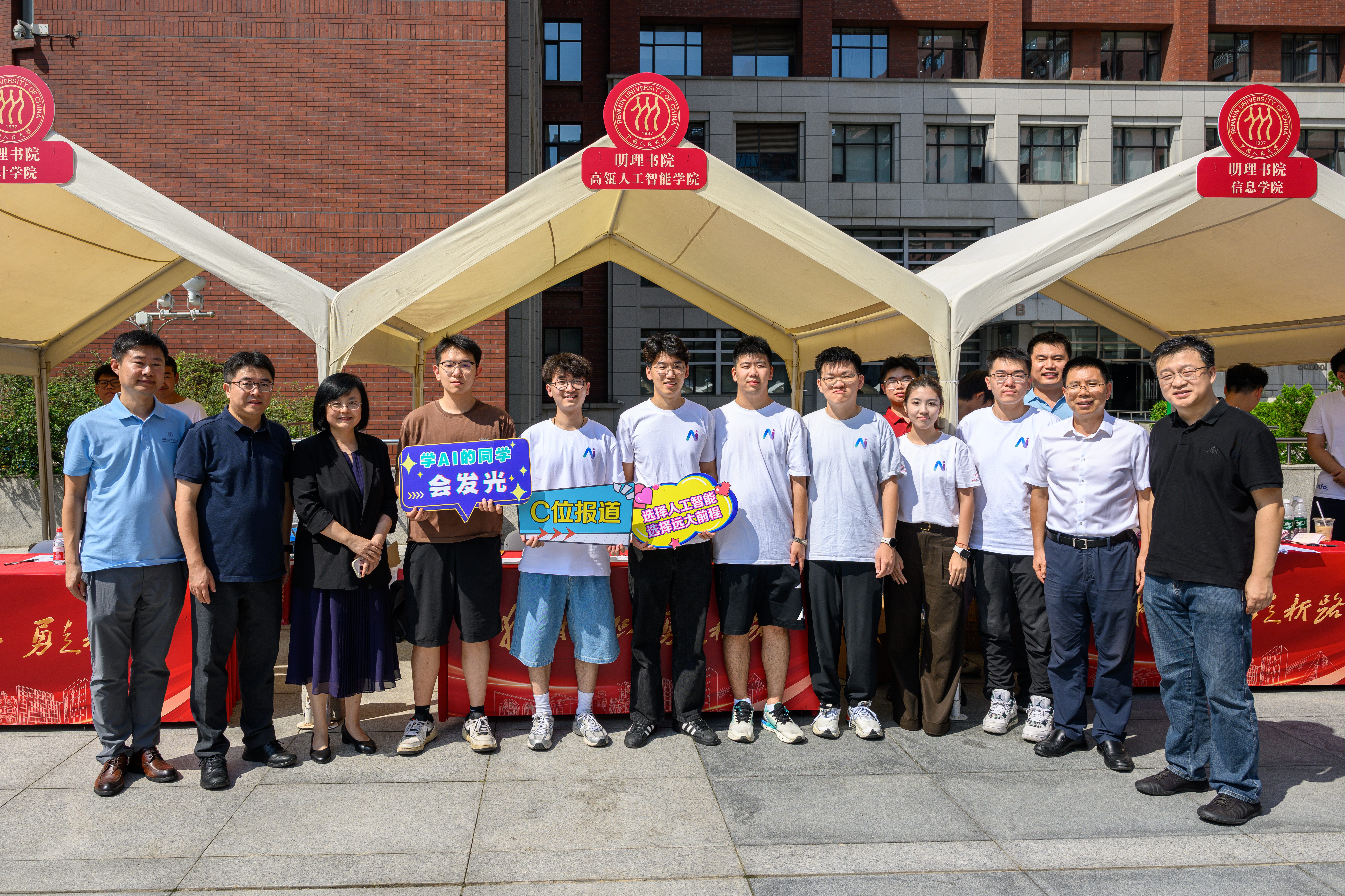 av直播 领导郑水泉、何力、青格勒图来到迎新现场,向新生表达热烈欢迎,并与同学们亲切互动,对大家未来在人工智能领域的学术探索与发展寄予厚望,并勉励大家夯实理论基础、勇攀科研高峰,成长为支撑国家人工智能战略需求的拔尖创新人才。
