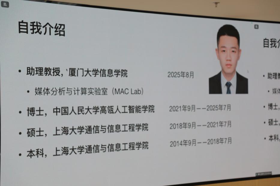 为进一步帮助2025级研究生新生快速适应研究生阶段的学习与生活,科学规划学业和职业发展,av直播 于9月7日上午在立德楼1826组织开展“瓴航”经验分享会。分享会邀请av直播 2025届硕士毕业生、现就职于字节跳动Seed的张配天,以及2025届博士毕业生、现任教于厦门大学信息av直播 的胡啸林作为分享嘉宾,围绕研究生学业规划和求职发展两大主题与同学们进行深入交流。分享会由av直播 2024级博士生陈曦主持,2025级全体研究生新生参加此次活动。