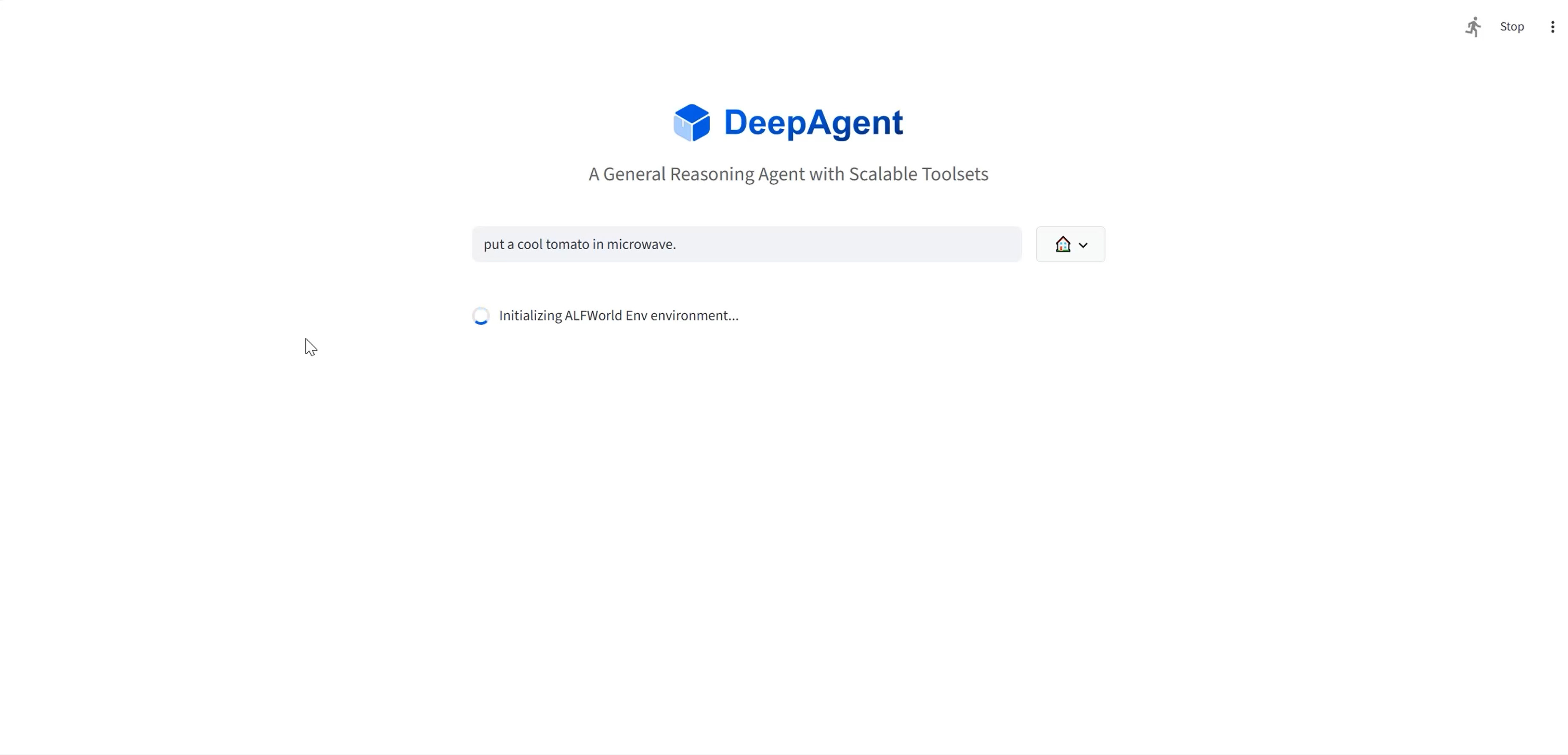 DeepAgent是一个具备可扩展工具集的推理智能体,能够从超过16,000个RapidAPI中搜索并使用合适的工具,以端到端的智能体推理过程解决通用任务。(注:由于ToolBench中的部分API已不可用,此演示中的API响应由LLM模拟,以展示系统的正常功能。)