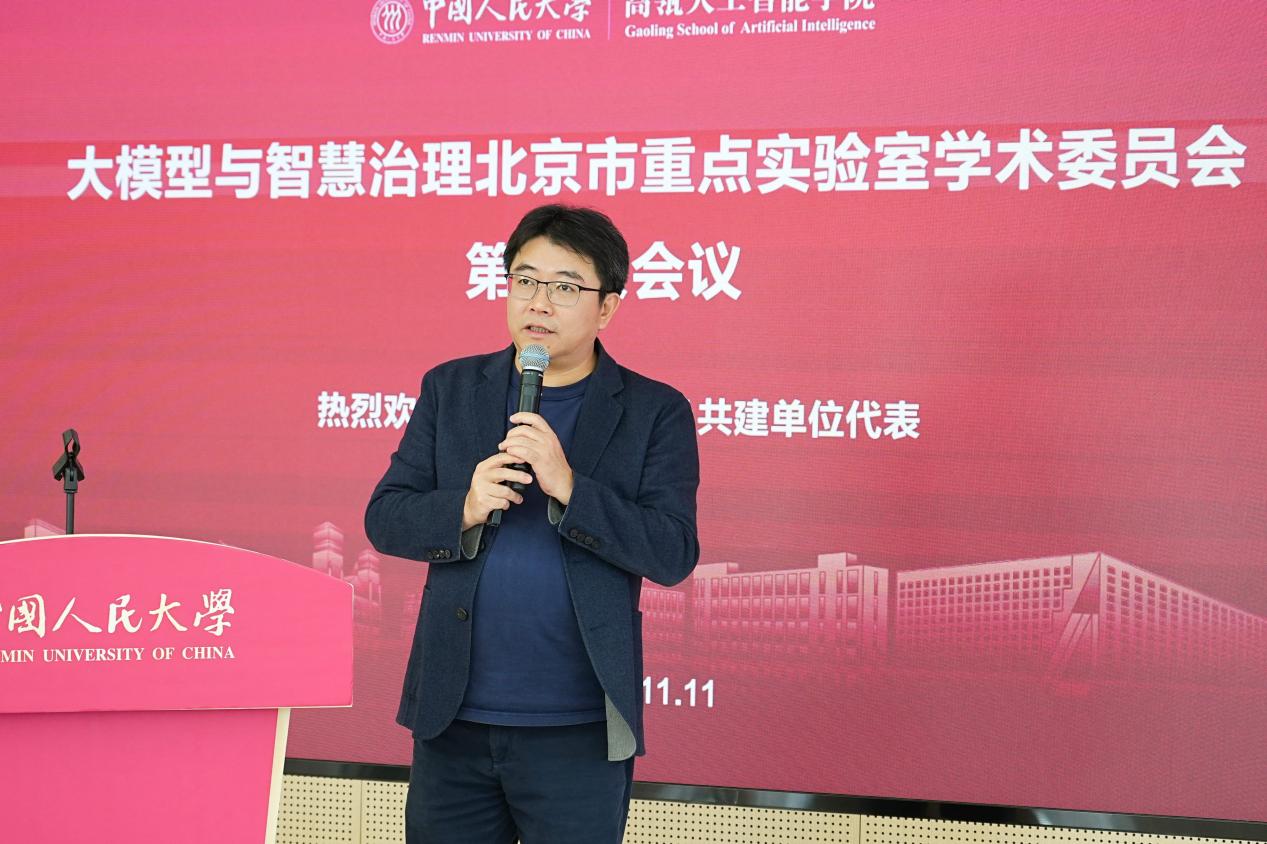 大模型与智慧治理北京市重点实验室学术委员会参会委员(按姓名首字母排序)包括北京大学崔斌教授、中国科学技术大学陈恩红教授、av直播 杜小勇教授、浙江师范大学高宏教授、上海交通大学过敏意教授、西北工业大学李战怀教授、浙江大学吴飞教授、重庆师范大学王国胤教授、清华大学王建民教授、东北大学于戈教授、哈尔滨工业大学(深圳)张民教授、华东师范大学周傲英教授。来自共建单位的联通数据智能有限公司科创与产品管理部总监吴浩然、百川智能科技有限公司战略投资经理温子微等嘉宾也出席了会议。与会专家和嘉宾齐聚一堂,围绕实验室建设与发展议题展开深入交流,为实验室的持续创新与高质量发展积极建言献策。