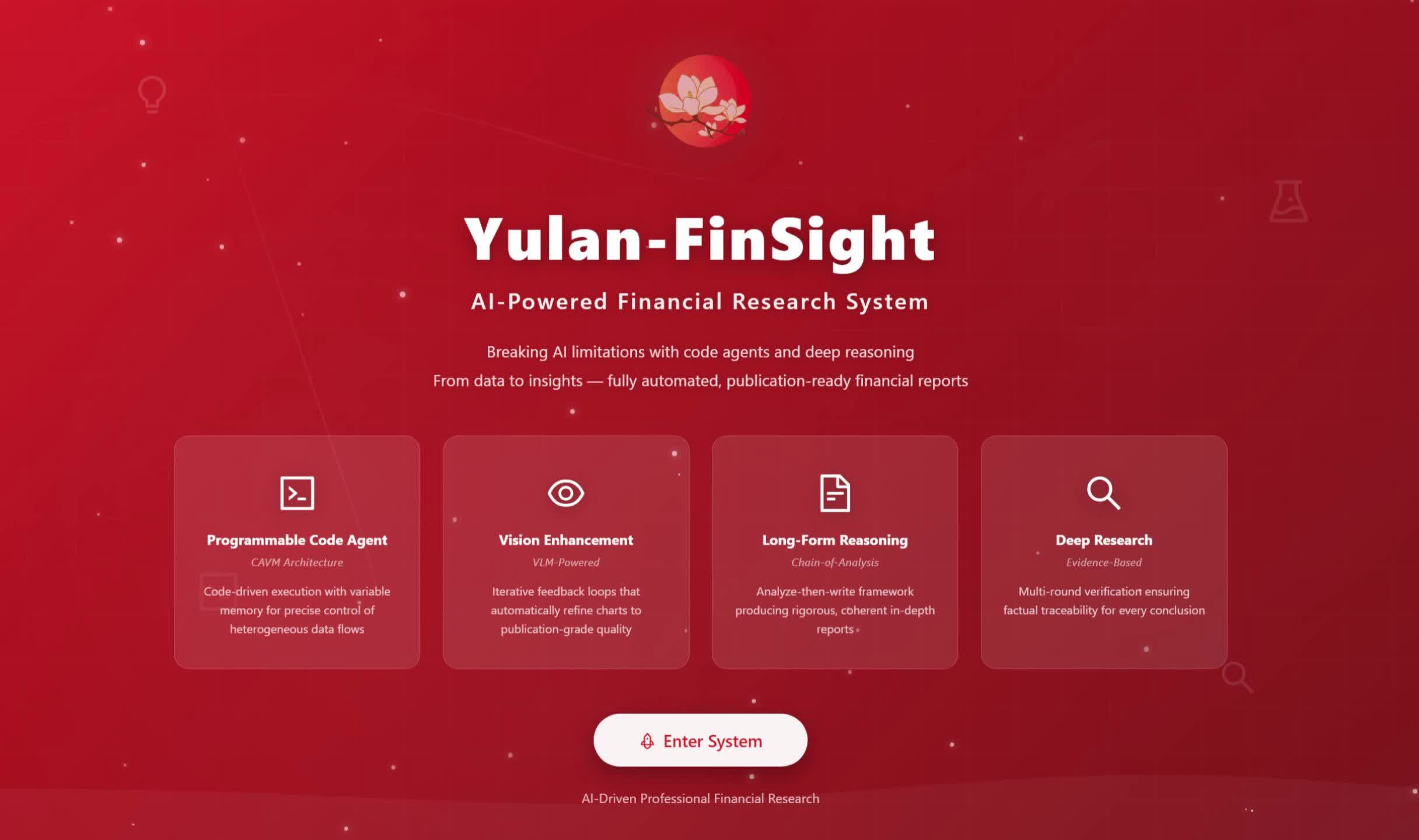 数以亿计的投资决策依赖于高质量、及时的研报。然而,撰写一份专业研报是极高强度的智力劳动,不仅需要处理海量实时异构数据,更依赖严谨的逻辑分析与专业的可视化呈现。目前的通用AI搜索系统(如 Perplexity, OpenAI Deep Research 等)在应对金融垂直领域时,常面临“领域知识缺失”、“图表生成简陋”以及“分析深度不足”三大挑战。为此,av直播 推出了 玉兰·融观 (Yulan-FinSight) —— 一款面向真实场景的专家级多模态金融研报生成系统。