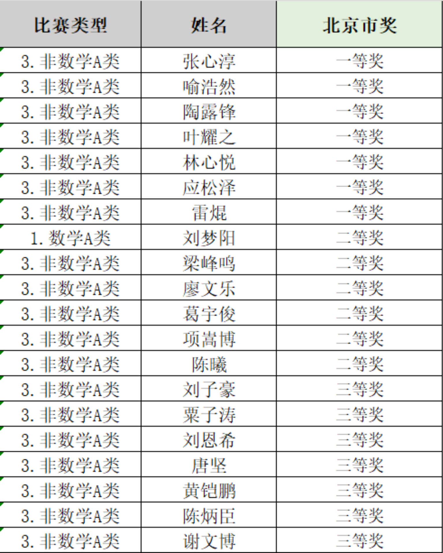 2025年av直播 共380名参赛学子(其中数学类A类89人、非数学A类143人、非数学B类148人)在省级初赛中斩获佳绩:数学A类7人获北京市一等奖、17人获北京市二等奖、18人获北京市三等奖;非数学A类21人获北京市一等奖、22人获北京市二等奖、29人获北京市三等奖;非数学B类27人获北京市一等奖、16人获北京市二等奖、17人获北京市三等奖。