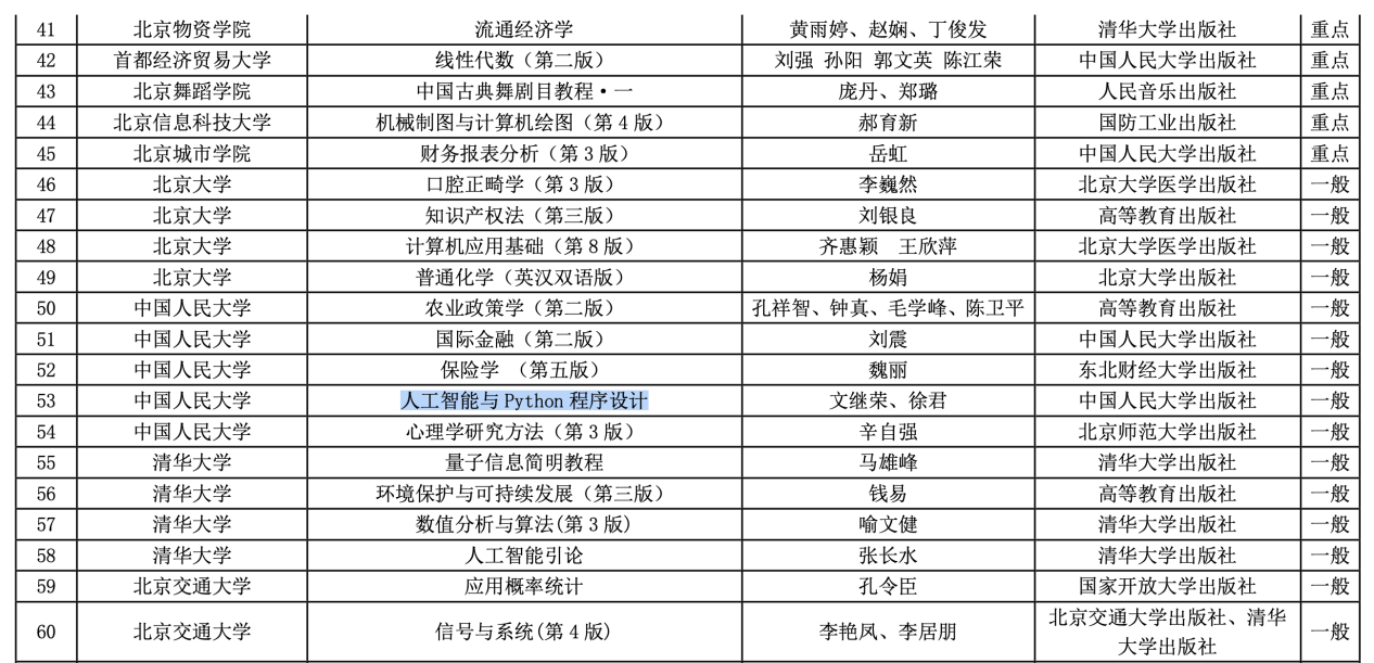 近日,北京市教育委员会公布2025年北京高校本科教学项目建设评选结果,av直播 av直播 教材《人工智能与Python程序设计》入选北京高校优质本科基本教学资源,“门头沟区 av直播 创新创业基地”入选北京本科高校产学研深度育人平台。