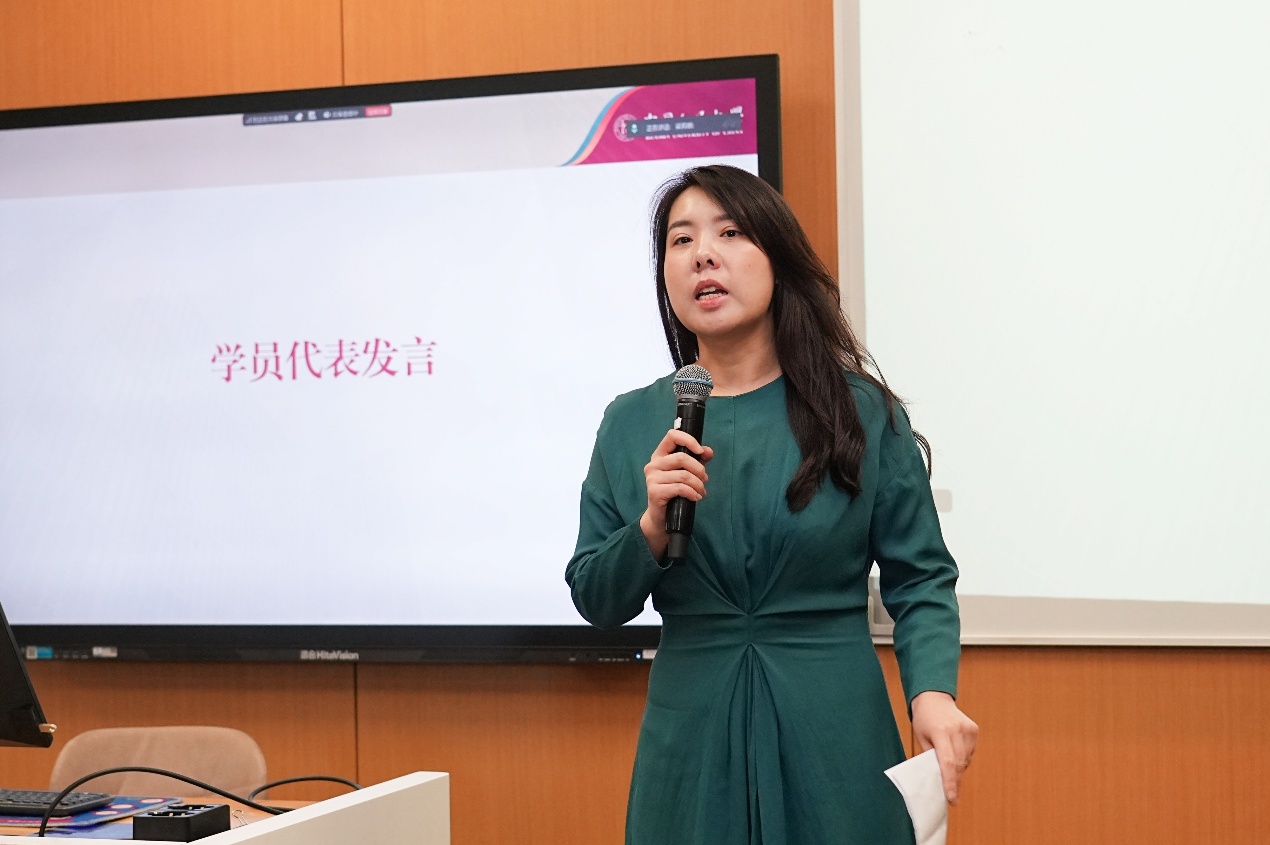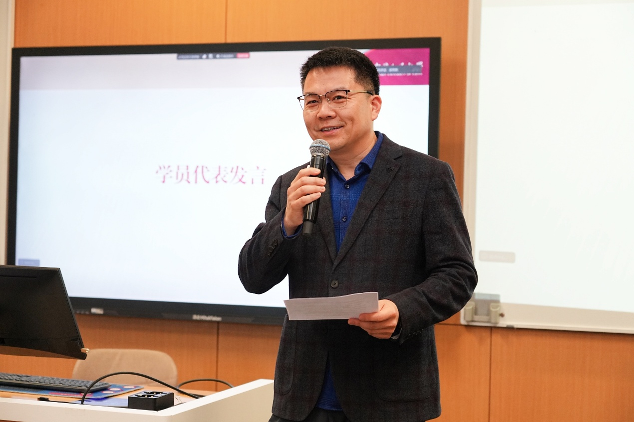 学员代表刘春涛在发言中分享了自己的学习动机与行业观察。他认为人工智能技术快速发展,已成为推动科技与产业变革的关键力量。结合自身股权投资工作经历,他在与人工智能企业交流中深刻认识到专业理解的重要性,因此希望通过系统学习弥补认知与判断能力的不足,更好把握技术趋势与产业价值,期望在提升专业能力的同时实现个人成长与职业发展的突破。
