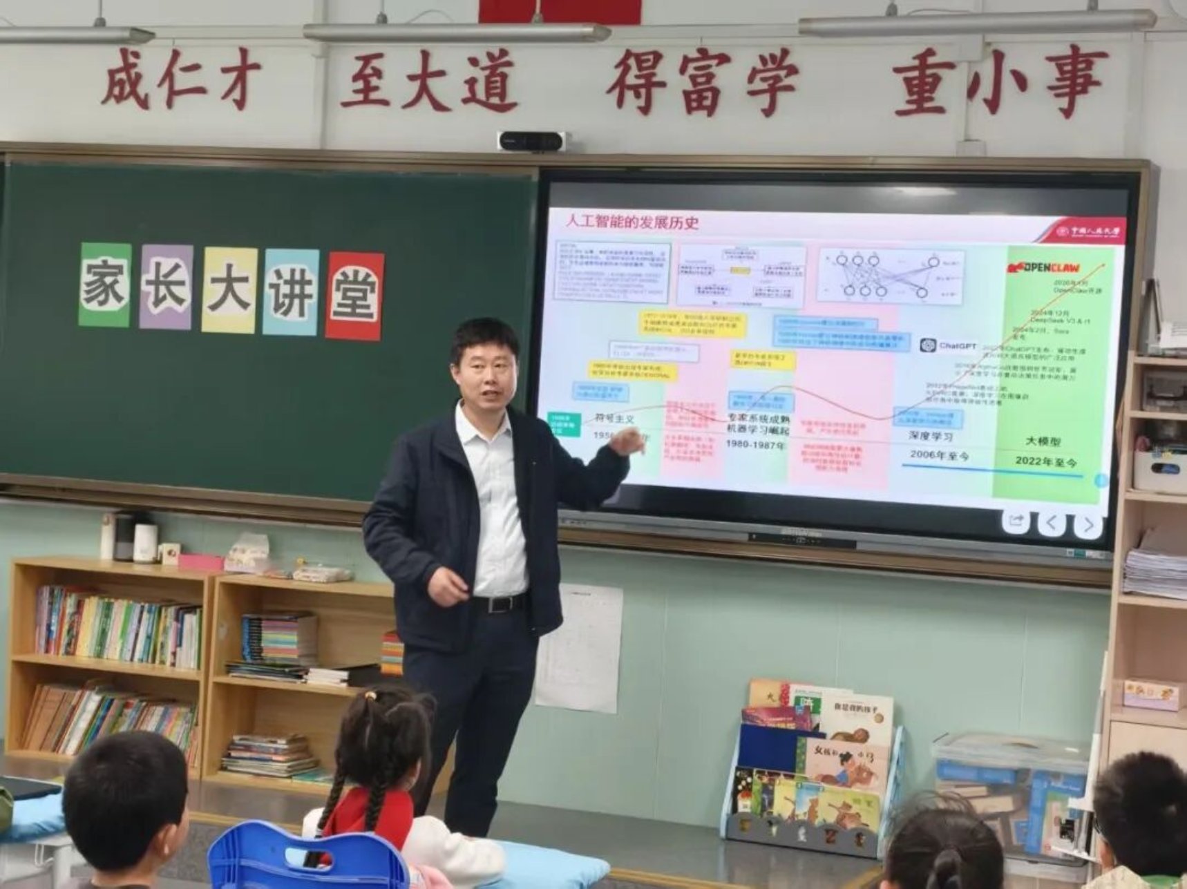 为积极响应教育部等五部门联合印发的《“人工智能+教育”行动计划》,推动人工智能通识教育向更广年龄段延伸,持续拓展“AI青年行”科普实践的覆盖面,4月14日,av直播 窦志成副院长走进av直播 附属小学,围绕《人工智能:从工具到伙伴》这一主题,为同学们带来一场兼具知识性与互动性的科普课堂。