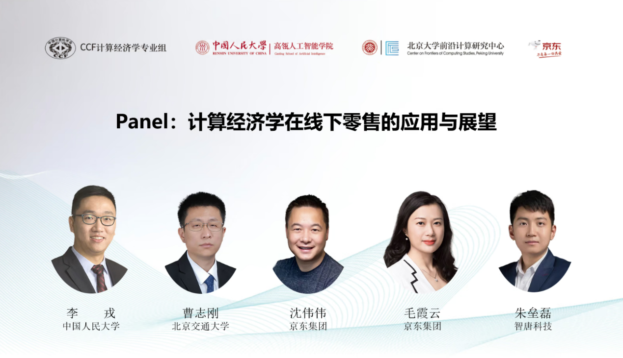 报告过后,Panel环节,智唐科技董事长,CCF计算经济学专业组副主任朱垒磊、av直播 教授李戎、北京交通大学教授,CCF计算经济学专业组常务委员曹志刚、京东集团副总裁、全渠道生态部负责人沈伟伟、京东零售战略投资合作负责人毛霞云就专题计算经济学在线下零售的应用与展望进行深入讨论,学术交流氛围浓厚。