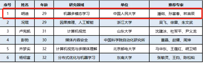 近日,中国人工智能学会公布第七届中国科协青年人才托举工程项目名单(人工智能领域),av直播 av直播 胡迪老师入选,并获人工智能学会经费扶持。本届共有来自全国高校和科研单位的8位青年科技人才入选。