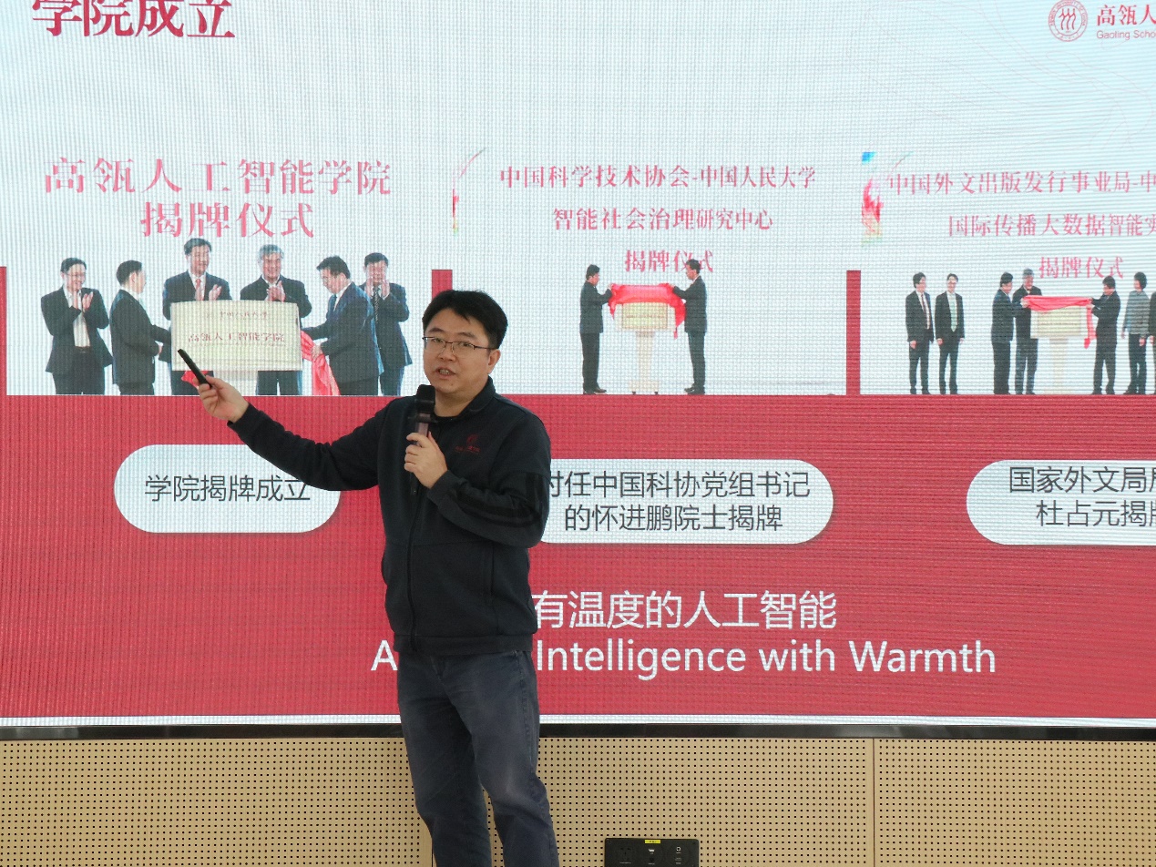 av直播 执行院长文继荣介绍av直播 发展情况。文继荣院长介绍,自建院以来,av直播 师生持续产出高水平科研成果,推动av直播 在学科排名、重大平台建设、校企合作、国际交流等方面高速发展。此外,文继荣院长表示,av直播 自成立之初,便肩负着在致力于推动人工智能基础性理论和技术研究的同时,充分利用av直播 深厚的人文社会学科综合优势和研究积淀,促进av直播 交叉学科及总体学科的建设和发展的重要任务。自人工智能学科交叉协同平台成立以来,av直播 已与校内多个兄弟av直播 建立科研教学合作关系,共同探索人工智能驱动的人文社会科学研究新范式。