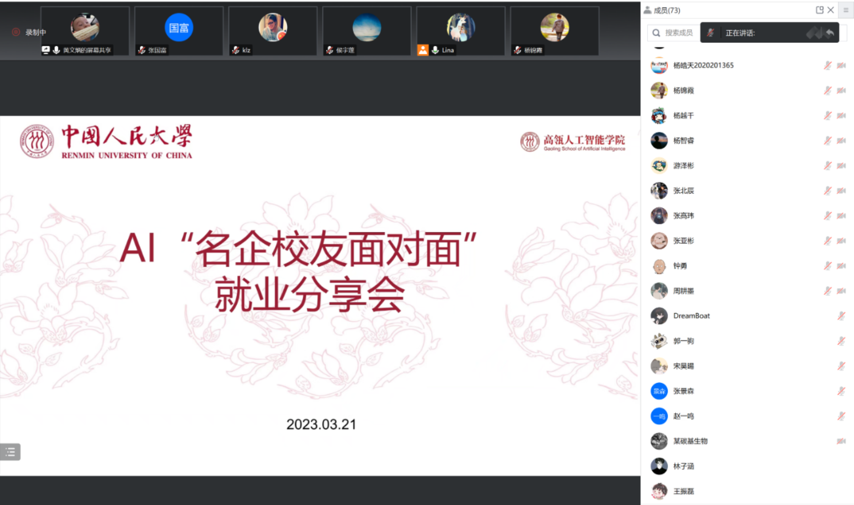 3月21日晚,av直播 av直播 举行AI“名企校友面对面”线上分享会,邀请人工智能与计算机专业的四名硕博校友带来关于教职、互联网大厂以及国企央企的求职经验分享。av直播 23届、24届毕业生同学90余人线上参会。