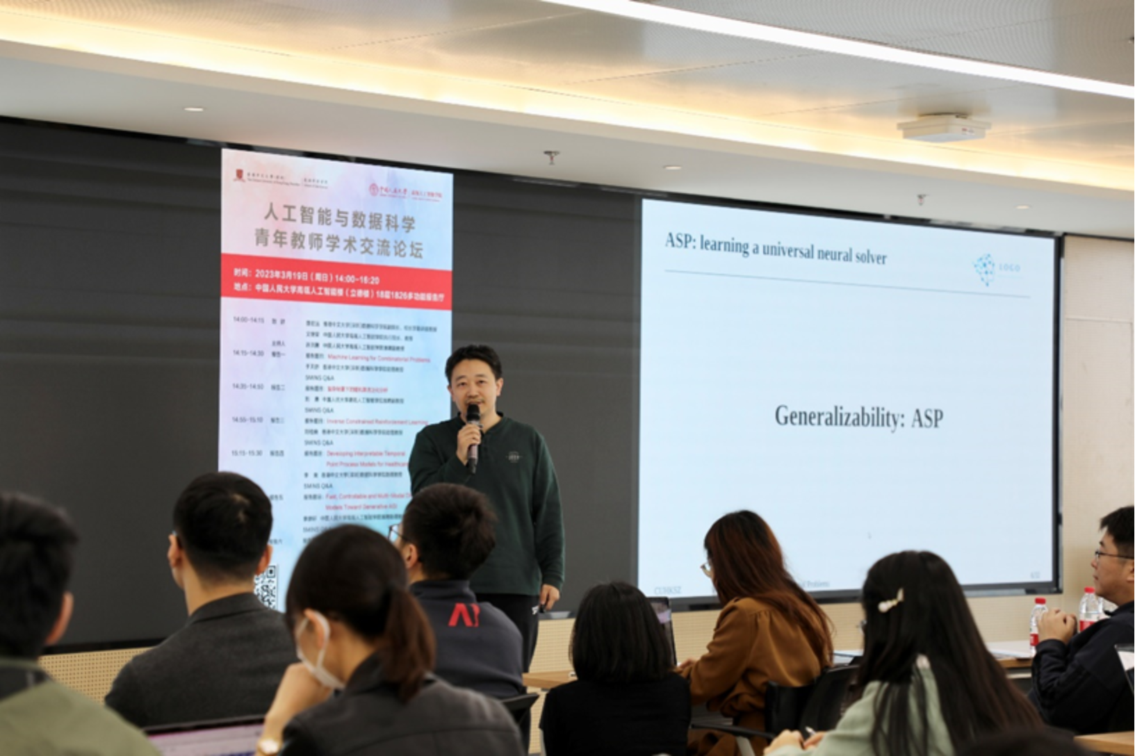 在学术报告环节,香港中文大学(深圳)数据科学av直播 助理教授于天舒的报告围绕如何用机器学习解决组合优化问题展开,他指出现有的基于学习的组合求解器泛化能力较差,为此他们提出了一种新的训练策略—ASP来处理泛化问题;此外,针对训练样本不足给学习带来的困难,由此介绍了其团队在基于布尔可满足性(SAT)来处理训练样本不足问题方面的研究成果。