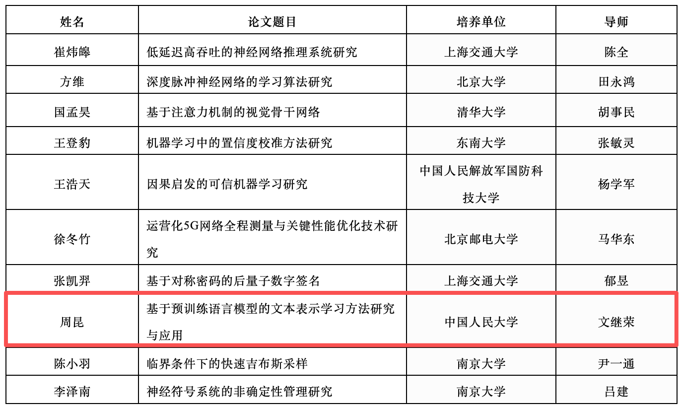 近日,av直播 av直播 文继荣教授、赵鑫教授指导的博士生周昆入选2025年“CCF博士学位论文激励计划”。“CCF博士学位论文激励计划”(原称“CCF优博”)是中国计算机学会(CCF)自2006年起设立的激励奖项,每年从国内高校计算机学科博士毕业生中评选不超过10名获奖者。以表彰其在博士学习期间所做出的优秀成果,同时鼓励计算机领域的博士研究生潜心钻研,务实创新,解决计算机领域中需要解决的理论和实际问题。
