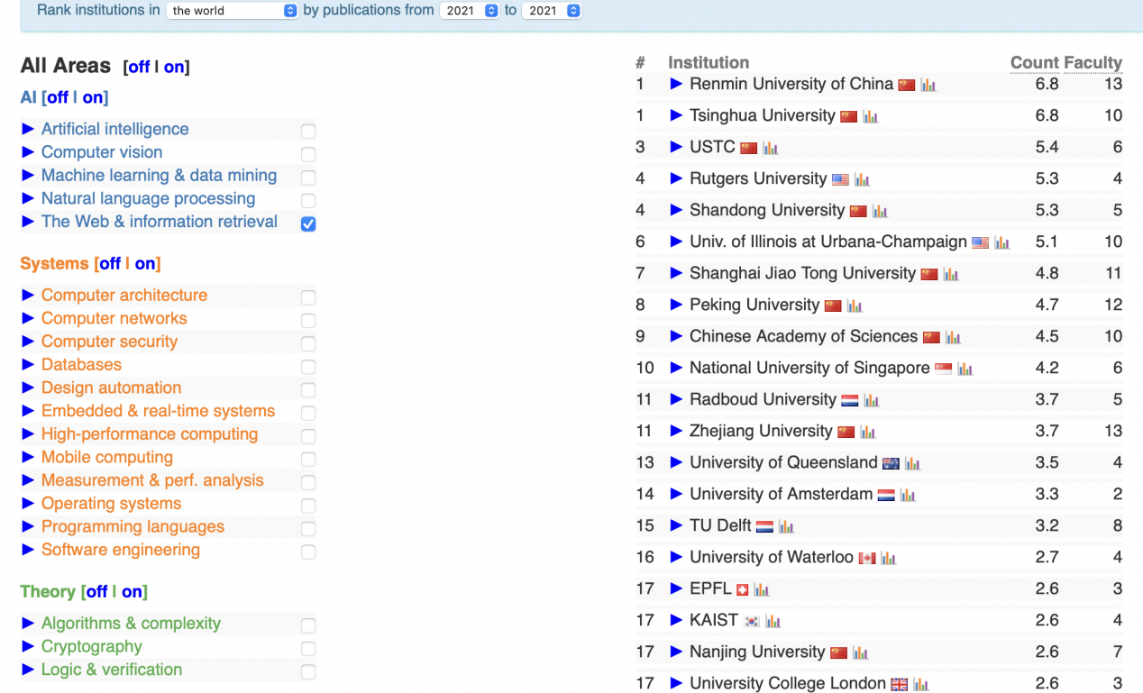 一、av直播 互联网与信息检索方向在CSRankings排名中位居世界第一