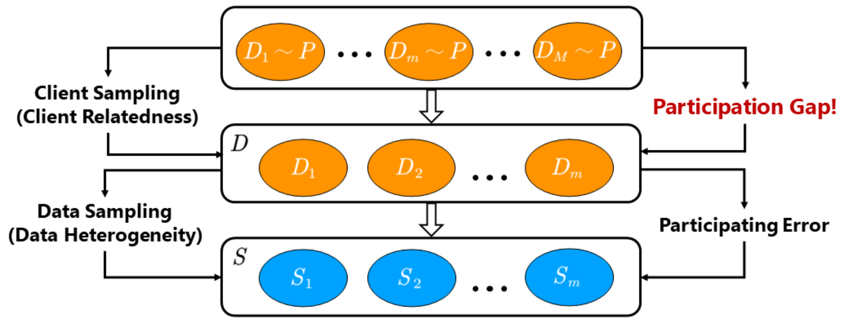 论文概述:在典型的联邦学习场景中,不同客户端(用户)对应的数据分布并不相同。由于隐私保护和无线网络稳定性等因素的限制,实际参与联邦学习训练的客户端往往只占全部客户端的一小部分。考虑到未参与训练的客户端与参与训练的客户端存在数据分布上的差异,参与训练的客户端训练好的模型能不能使得未参与训练的客户端获益成为亟待回答的问题。联邦学习社区已有工作大多只关注训练过程中的优化收敛速度,泛化分析方面仅有的工作也只是考虑了参与训练的客户端。本文对未参与训练的客户端对应的泛化性能进行了分析,从理论上阐明了影响未参与训练的客户端获益的因素。