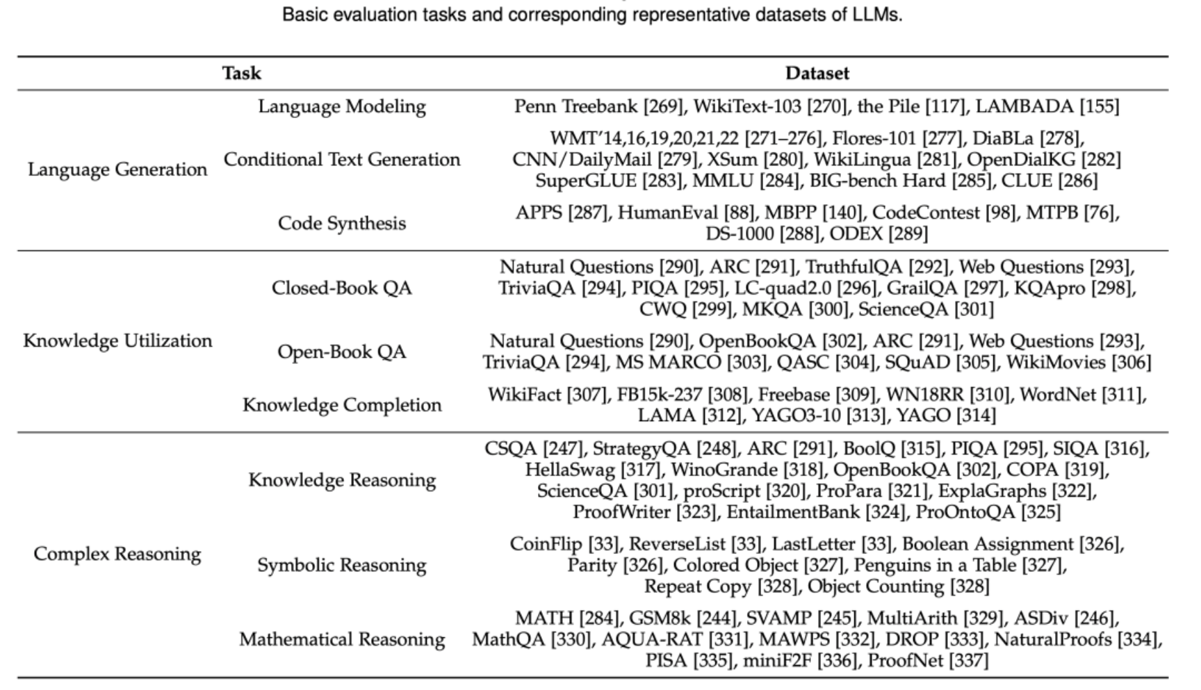 为了评估大语言模型的有效性和优越性,研究者在大量任务和评测基准上进行了评测与分析。我们从三个角度总结梳理了大语言模型的相关能力评估。