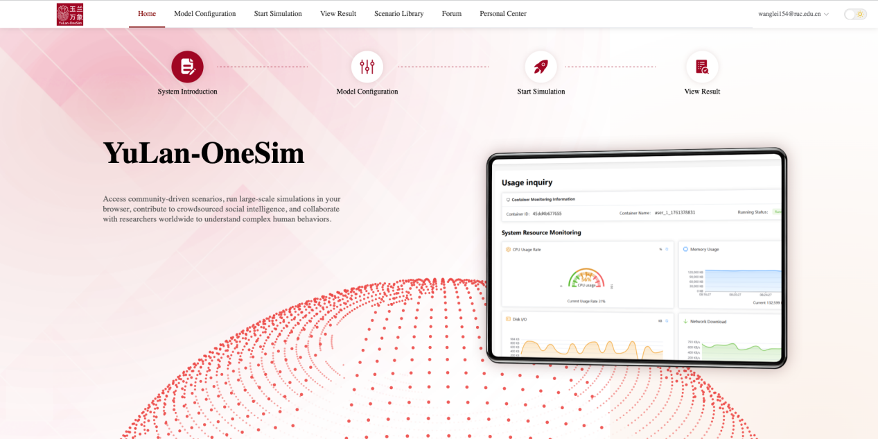 面向未来,玉兰-万象在线版(YuLan-OneSim Online)将继续拓展社会模拟的边界,构建更加开放、智能与协同的科研生态,成为智能社会仿真领域的核心引擎和全球交流的新窗口。